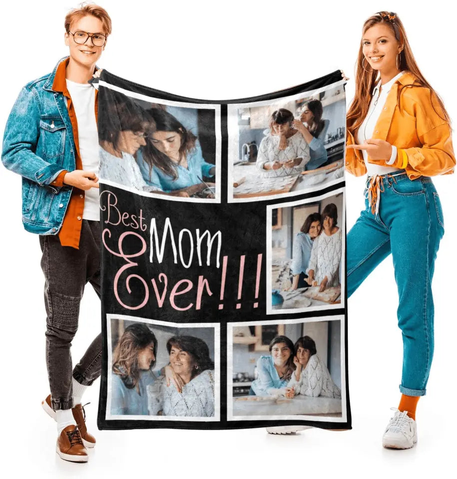 Best Mom Ever Custom Blanket with 5 Photos Personalized Picture Blanket Customized Gifts for Mom Grandma for Birthday Mother's Day Christmas