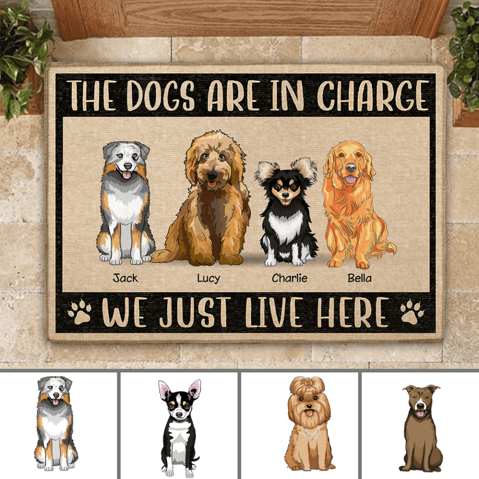 Funny The Dogs Are In Charge Personalized Doormat DM-PT1388