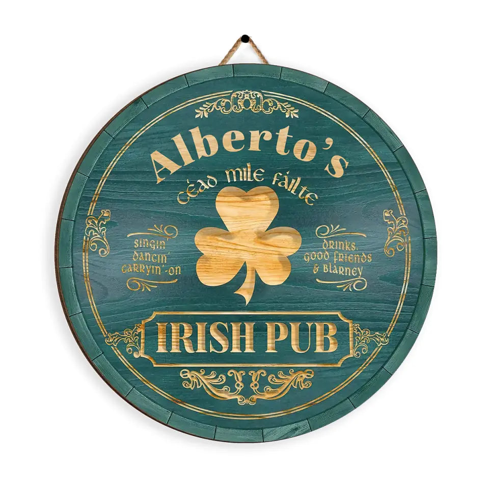 Irish Pub, Clover Sign - Personalized Round Wooden Sign, St. Patrick's Day Decor - DS504
