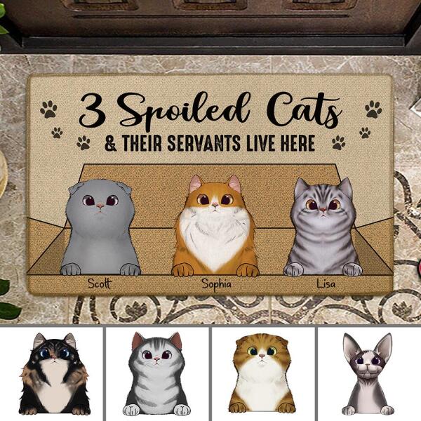 Spoiled Cats And Their Servants Live Here Personalized Doormat DM-NN639