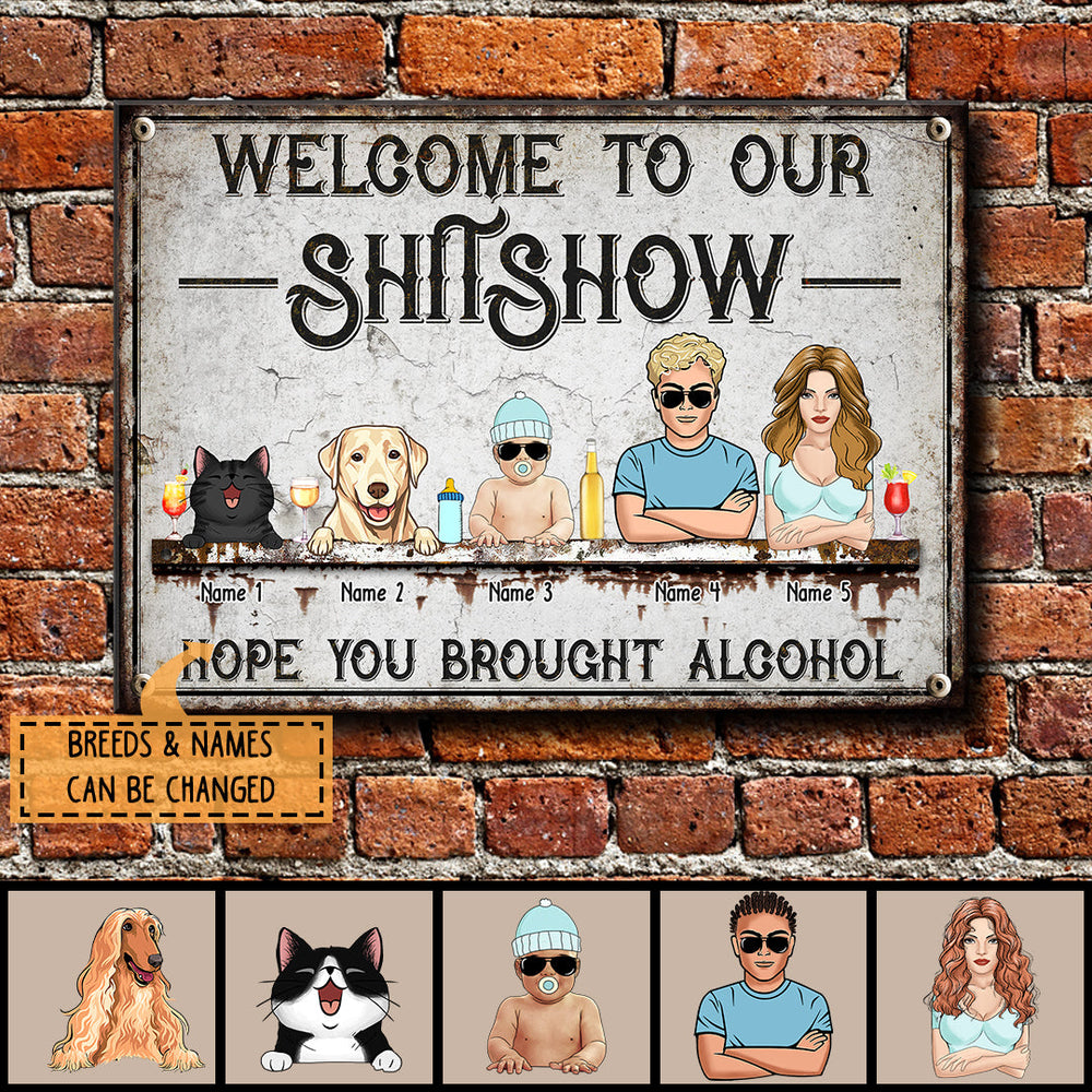 Welcome To Our Shitshow, Hope You Brought Alcohol, Cool Style Family, Personalized Dog & Cat Breed Metal Sign